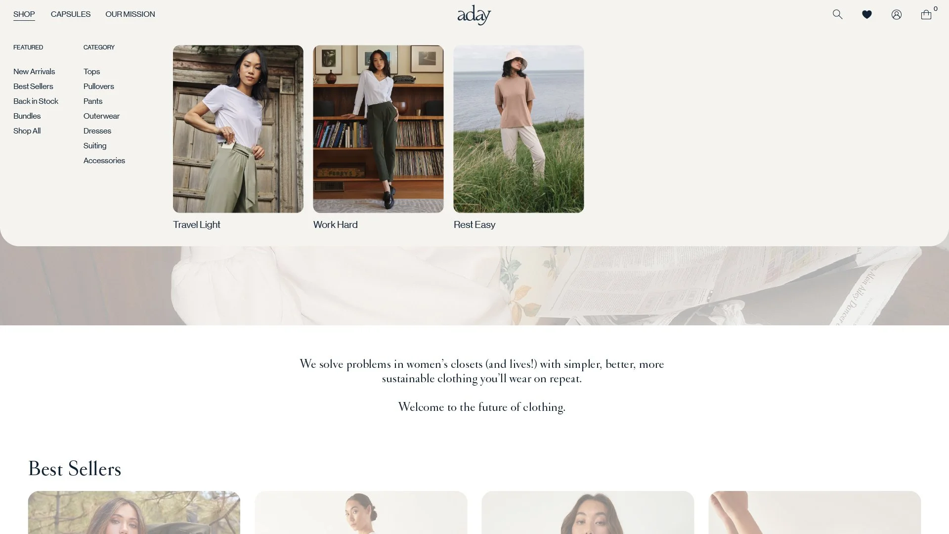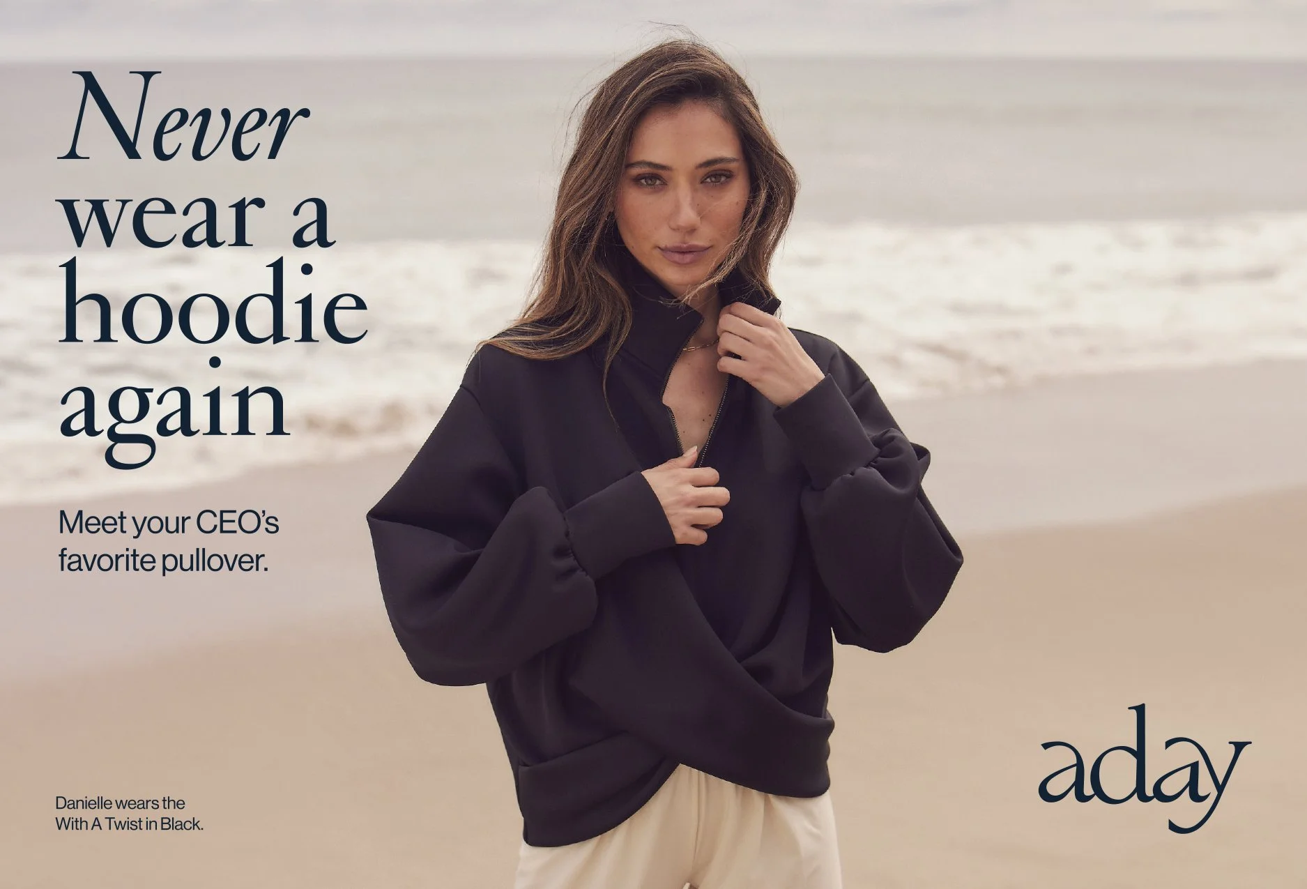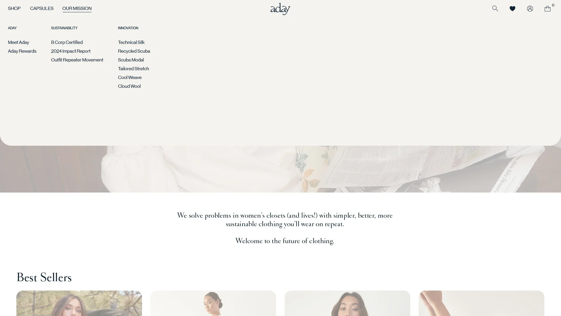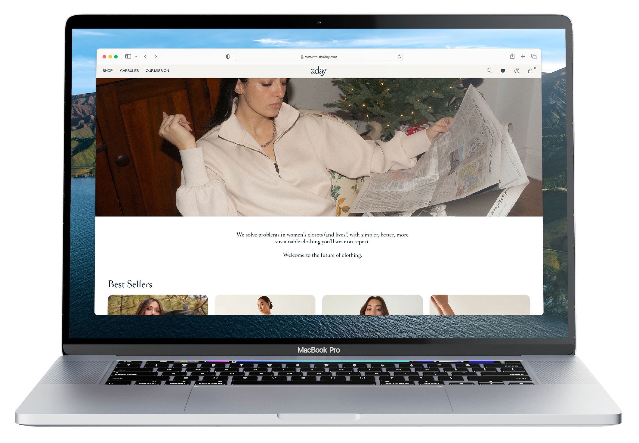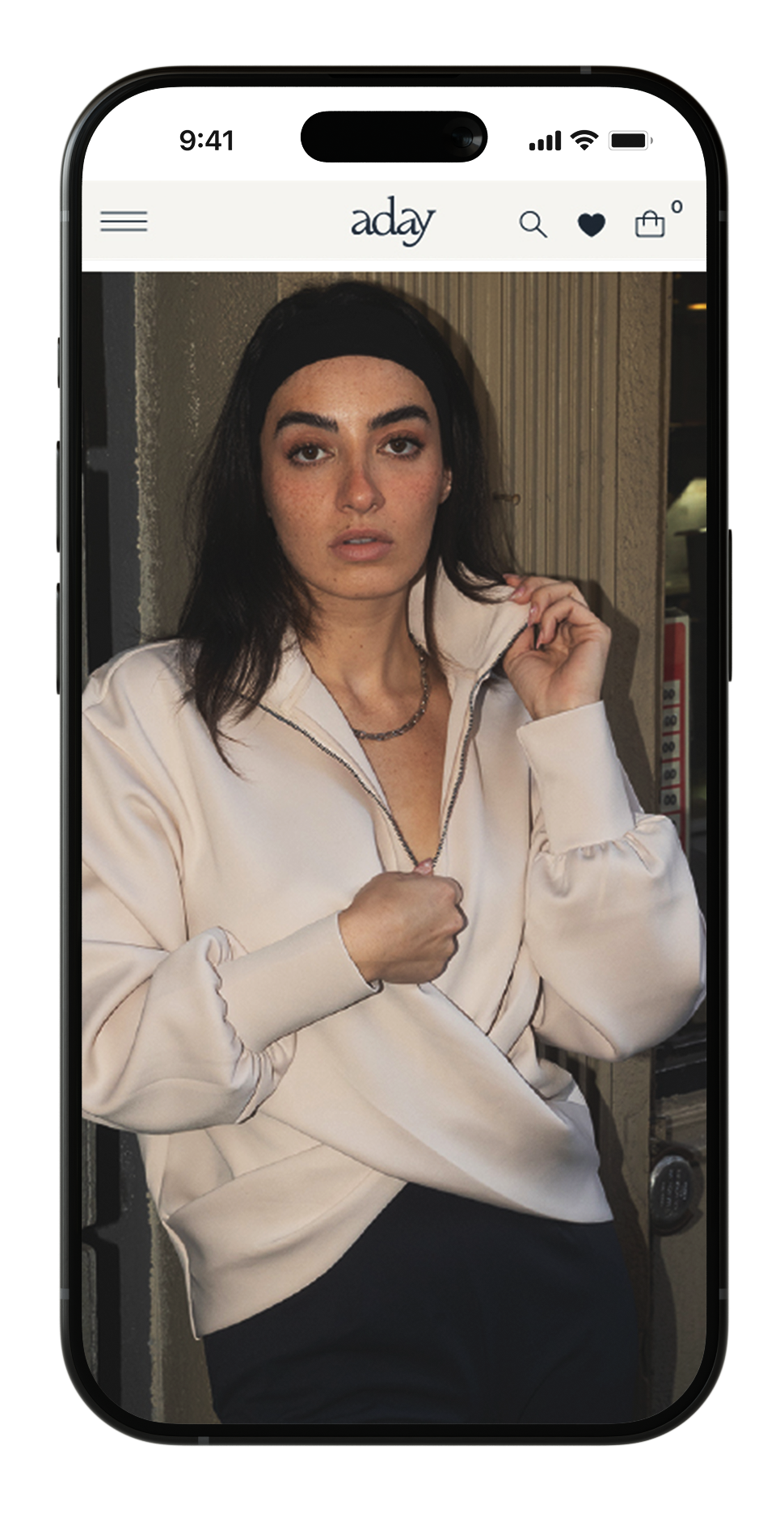 Advertising and site design for Aday, a Los Angeles-based womenswear brand creating capsule collections designed for maximum versatility. Each piece is sustainably crafted using innovative, high-performance fabrics that ensure durability, longevity, and effortless care.
